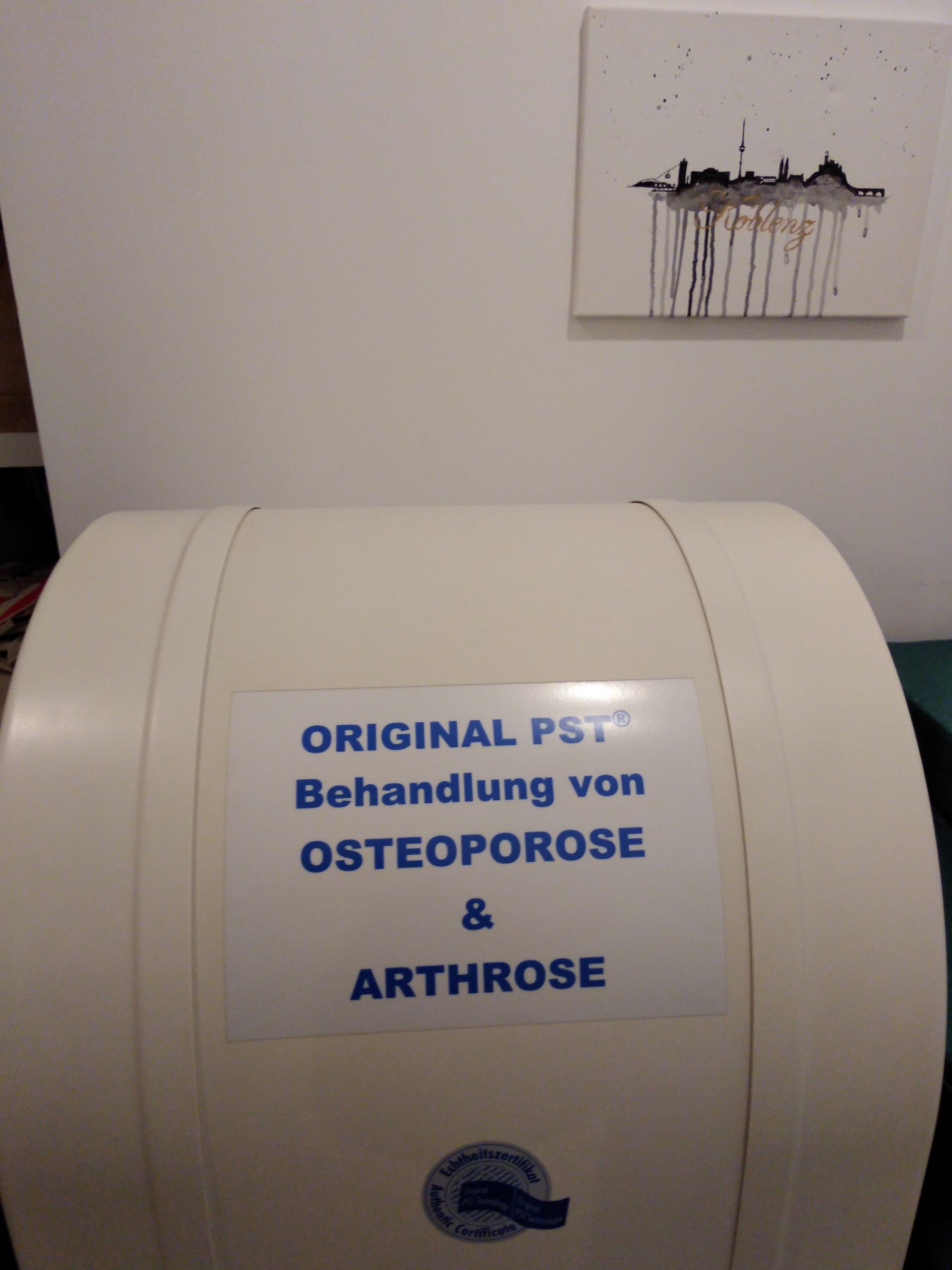 - Anwendung: Das betroffene Gelenk wird in einer Luftspule platziert, die pulsierende Signale erzeugt. Eine Behandlungsserie umfasst 9–12 Sitzungen à 60 Minuten an aufeinanderfolgenden Tagen.